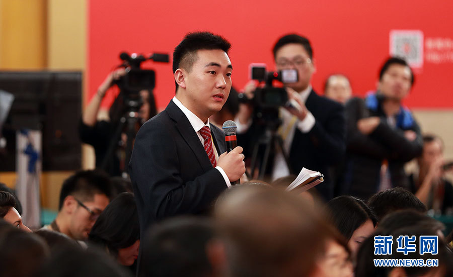 10月23日,十九大新聞中心舉辦記者招待會(huì),邀請(qǐng)中央財(cái)經(jīng)領(lǐng)導(dǎo)小組辦公室副主任楊偉民,環(huán)境保護(hù)部黨組書(shū)記、部長(zhǎng)李干杰介紹踐行綠色發(fā)展理念,建設(shè)美麗中國(guó)有關(guān)情況,并回答記者提問(wèn)。圖為浙江衛(wèi)視記者提問(wèn)。新華網(wǎng) 郝廣鵬攝