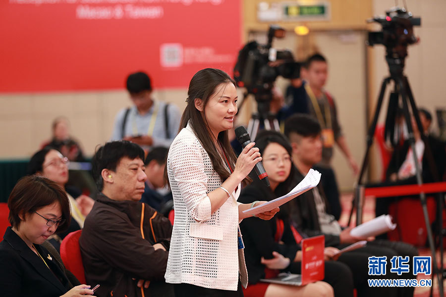 10月23日,十九大新聞中心舉辦集體采訪活動,主題為“打好生態(tài)環(huán)保攻堅(jiān)戰(zhàn)”。圖為中國冶金報(bào)記者提問。新華網(wǎng) 郝廣鵬攝