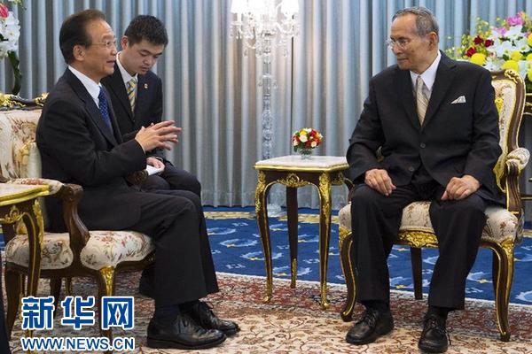 溫家寶說,我訪問泰國期間,真切感受到“中泰一家親”,兩國人民之間有著親戚般情誼。普密蓬國王和泰國王室為推進中泰友好事業發揮了不可替代的重要作用,中方對此深表贊賞。我同英拉總理就雙邊關系深入交換了看法,達成新的重要共識。我相信在泰國王室關心和支持下,在兩國各界的共同努力下,中泰全面戰略合作伙伴關系一定會不斷向前發展,更好造福兩國人民。
