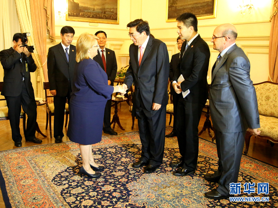 ??? 6月16日,在馬耳他首都瓦萊塔的總統(tǒng)府,郭金龍會見馬耳他總統(tǒng)普雷卡(前左一)。應邀對馬耳他進行友好訪問的中共中央政治局委員、北京市委書記郭金龍16日在瓦萊塔分別會見馬耳他總統(tǒng)普雷卡和總理、工黨領袖穆斯卡特。 新華社記者李佳攝
