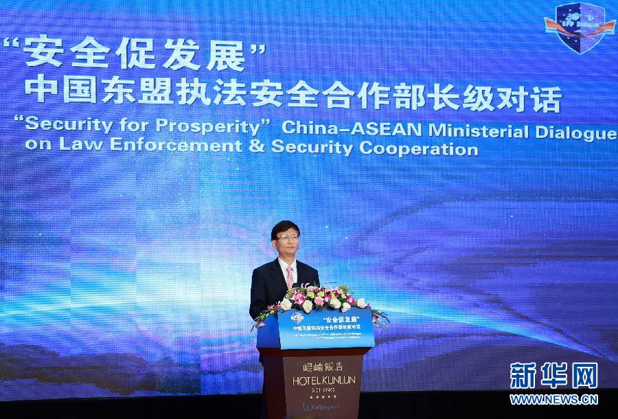 ??? 10月23日,“安全促發(fā)展”中國(guó)東盟執(zhí)法安全合作部長(zhǎng)級(jí)對(duì)話在北京舉行。這是中共中央政治局委員、中央政法委書(shū)記孟建柱致開(kāi)幕辭。新華社記者 丁海濤 攝