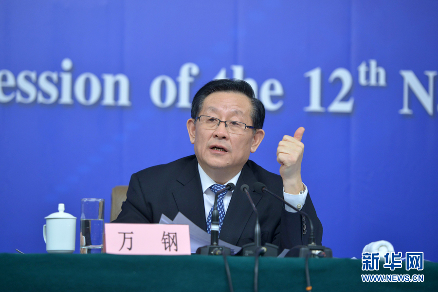 ??? 十二屆全國人大三次會議新聞中心于3月11日10時45分舉行記者會,邀請科技部部長萬鋼就科技改革與發(fā)展回答中外記者提問。圖為萬鋼回答記者提問。新華網/中國政府網 郭小天 攝