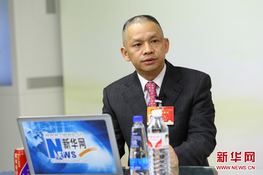 ????2015年3月13日,全國人大代表、湖南科力遠新能源股份有限公司董事長鐘發(fā)平做客新華會客廳。新華網(wǎng) 李江 攝?