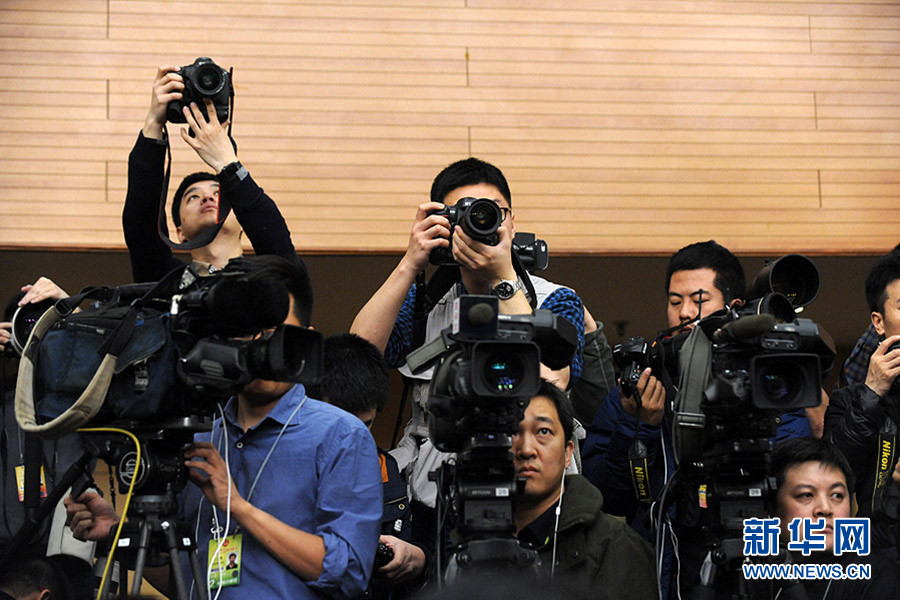 十二屆全國人大四次會議新聞中心于3月8日(星期二)10時在梅地亞中心多功能廳舉行記者會,邀請外交部部長王毅就“中國的外交政策和對外關(guān)系”的相關(guān)問題回答中外記者的提問。圖為現(xiàn)場記者緊張地工作。新華網(wǎng)/中國政府網(wǎng)記者 陳競超攝