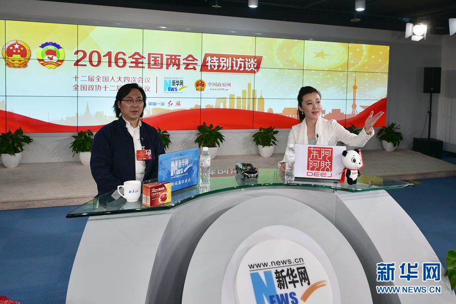 3月13日,全國人大代表、中國文聯(lián)全委、中國音樂家協(xié)會副主席,上海音樂家協(xié)會副主席、上海音樂學院副院長廖昌永做客新華網2016全國兩會特別訪談,與新華網網友在線交流。圖為廖昌永在訪談現(xiàn)場。新華網 郭小天 攝