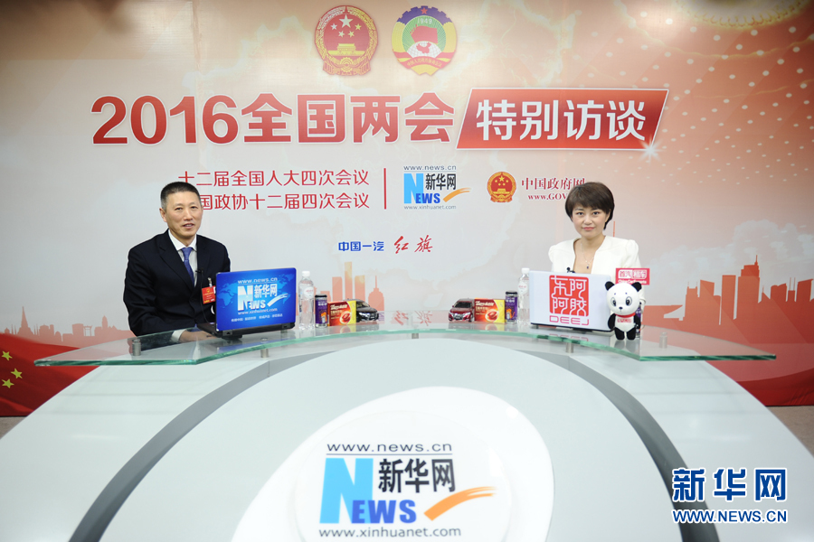 ??? 2016年3月13日,全國人大代表,煙臺張裕葡萄釀酒股份有限公司總經理周洪江做客新華網兩會訪談。圖為周洪江在訪談現場。新華網 盧志佳 攝
