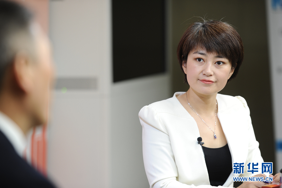 ??? 2016年3月13日,全國人大代表,煙臺張裕葡萄釀酒股份有限公司總經(jīng)理周洪江做客新華網(wǎng)兩會訪談。圖為新華網(wǎng)主持人苑茵子。新華網(wǎng) 盧志佳 攝