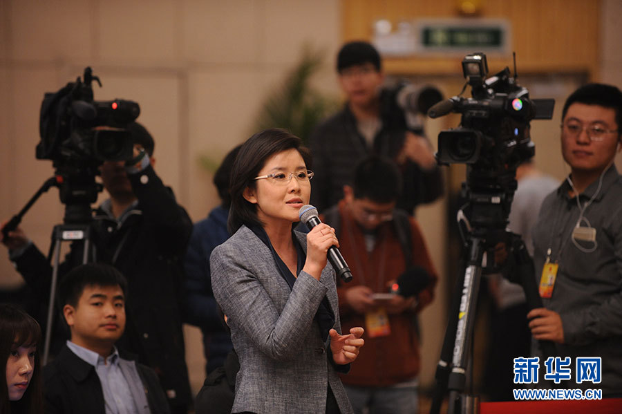 十二屆全國人大四次會議新聞中心于3月15日(星期二)10時在梅地亞中心多功能廳舉行記者會,邀請住房和城鄉(xiāng)建設部部長陳政高、副部長陸克華、副部長倪虹就“棚戶區(qū)改造和房地產工作”的相關問題回答中外記者的提問。圖為中央電視臺記者提問。新華網/中國政府網 陳杰 攝