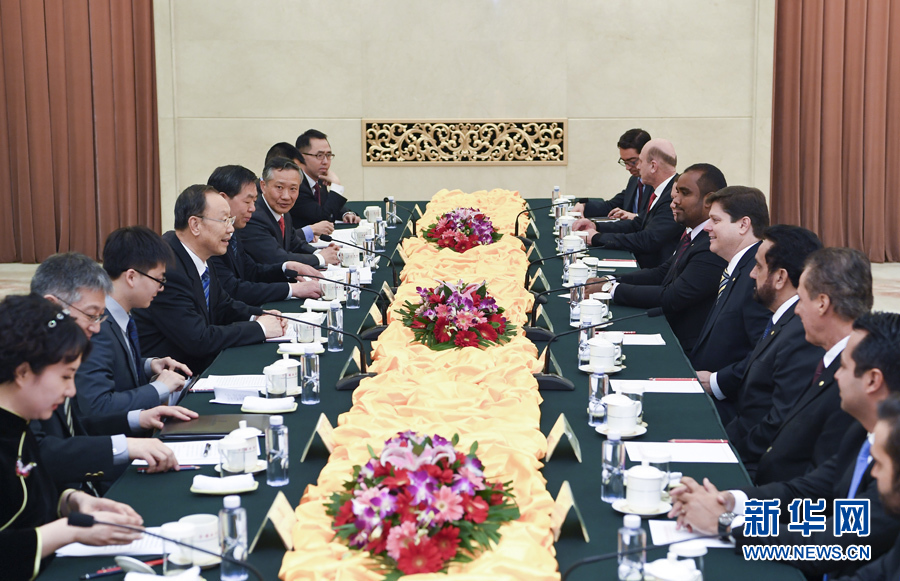 3月22日,中共中央書記處書記、全國政協副主席杜青林在北京會見巴西民主運動黨眾議院黨團領袖羅西率領的該黨干部考察團。 新華社記者張領攝