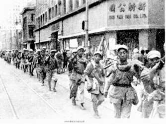 解放軍進入南京路資料照片。圖片來自黃浦區檔案館