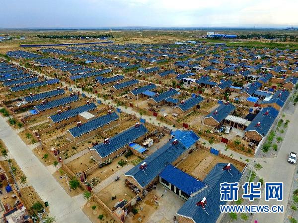 涇興村全貌照片(2017年6月21攝)。涇興村是位于寧夏回族自治區(qū)靈武市白土崗鄉(xiāng)的純移民新村,村民593戶2692人系2015年從寧夏涇源縣7個鄉(xiāng)鎮(zhèn)21個行政村搬遷而來。該村目前共有建檔立卡戶239戶1180人,扶貧脫貧任務(wù)艱巨。當(dāng)?shù)卣鶕?jù)該村情況,通過土地流轉(zhuǎn),引進(jìn)大型養(yǎng)殖企業(yè);密切與企業(yè)合作,在村中建立“扶貧車間”;依托實力雄厚企業(yè),促成企業(yè)與貧困戶結(jié)對幫扶等方式,逐步實現(xiàn)貧困戶脫貧致富。新華社發(fā)