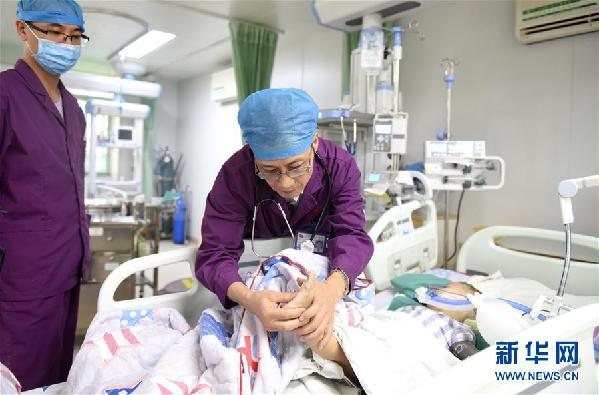 林明祥(右)在為患兒檢查(10月31日攝)。新華社記者盧漢欣攝