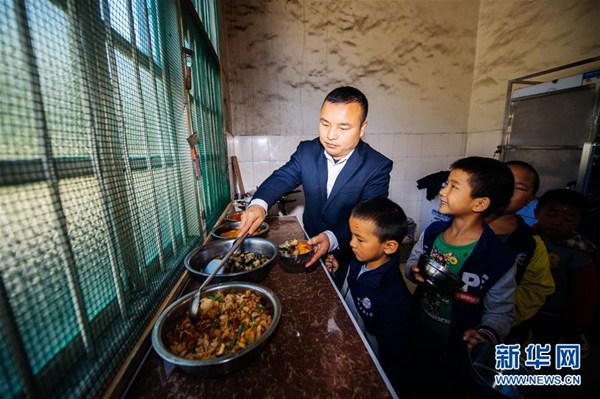 11月8日,湖南省花垣縣十八洞小學(xué)教師吳忠碧為學(xué)生打午餐。新華社記者 劉金海 攝