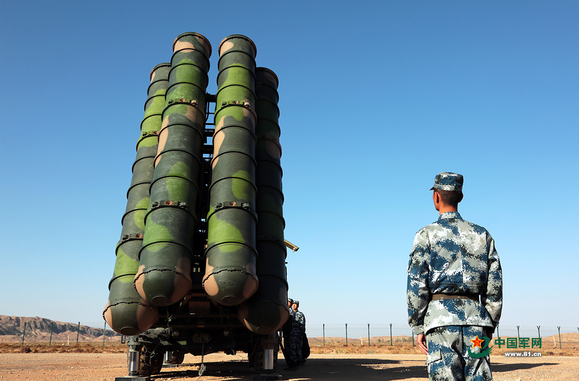 空軍“藍盾-2017S”金盾牌比武競賽,空軍地導某旅導彈快速起豎,準備戰斗。李明 攝影
