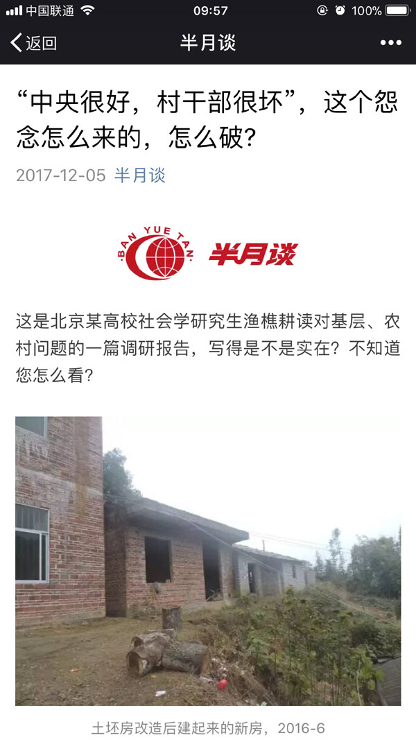——半月談網友熱議“中央很好,村干部很壞”背后