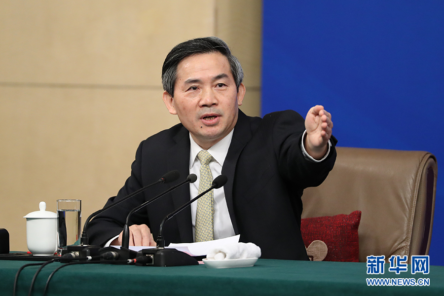 十二屆全國人大五次會議新聞中心于3月8日(星期三)10時在梅地亞中心多功能廳舉行記者會,邀請外交部部長王毅就“中國的外交政策和對外關系”的相關問題回答中外記者的提問。圖為記者會主持人何紹仁。新華網/中國政府網?翟子赫 攝