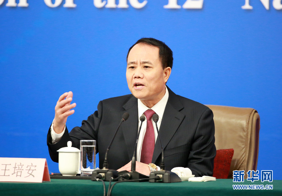 3月11日,十二屆全國人大五次會議新聞中心舉行記者會,邀請國家衛生計生委主任李斌、副主任王培安和副主任、國務院醫改辦主任王賀勝就“‘十三五’開局之年衛生計生改革發展”的相關問題回答中外記者的提問。圖為國家衛生計生委副主任王培安回答記者提問。新華網/中國政府網 翟子赫 攝