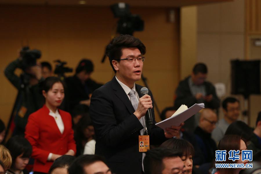 3月14日,十二屆全國(guó)人大五次會(huì)議新聞中心舉行記者會(huì),邀請(qǐng)國(guó)家質(zhì)檢總局局長(zhǎng)支樹(shù)平、副局長(zhǎng)兼國(guó)家認(rèn)證認(rèn)可監(jiān)督管理委員會(huì)主任孫大偉、國(guó)家標(biāo)準(zhǔn)化管理委員會(huì)主任田世宏就“質(zhì)量提升”的相關(guān)問(wèn)題回答中外記者的提問(wèn)。圖為新華社記者提問(wèn)。新華網(wǎng)/中國(guó)政府網(wǎng) 傅義洲 攝?