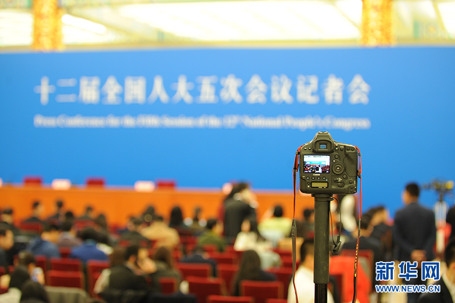 3月15日上午,國務院總理李克強在人民大會堂三樓金色大廳會見采訪十二屆全國人大五次會議的中外記者并回答記者提出的問題。圖為記者會現場。新華網/中國政府網 翟子赫 攝?