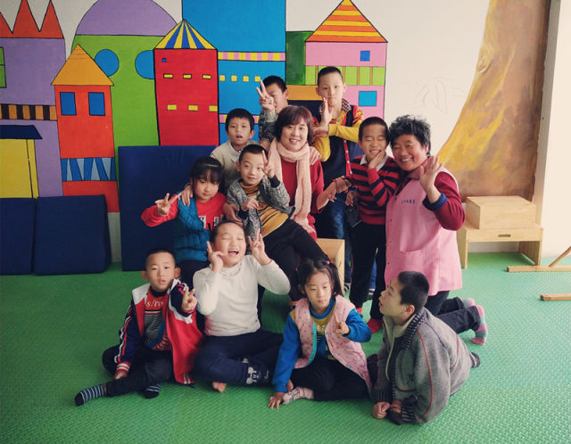 賈秀芳與康復(fù)中心的腦癱患兒(2017年11月25日攝)
