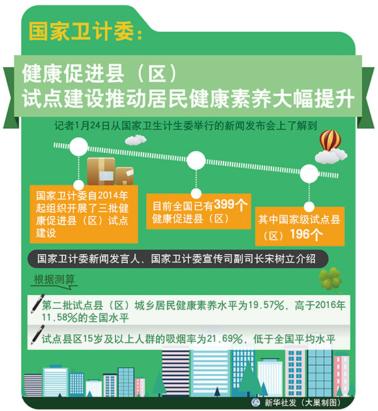 圖表:國家衛(wèi)計委:健康促進縣(區(qū))試點建設推動居民健康素養(yǎng)大幅提升 新華社發(fā) 大巢制圖