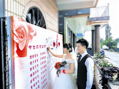 “今天酒席吃得很開心,沒有山珍海味,沒有鋪張浪費,沒有盲目攀比,就是實實在在的平價風,主人家輕松,我們客人也樂得輕松?!闭憬∑胶行聜}鎮三叉河村村民蔡玲燕剛參加完一場婚宴,笑呵呵地對記者說。