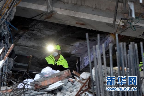 事態(tài)果然如傅崐萁所擔(dān)心的,隨著大雨不斷,幾乎每個(gè)小時(shí)都有余震,搜救環(huán)境變得越來(lái)越惡劣,到下午4點(diǎn)左右,由于大樓固定鋼梁出現(xiàn)滑動(dòng)情形,救災(zāi)人員不得不從樓中撤出,救災(zāi)工作暫停。現(xiàn)場(chǎng)施工人員運(yùn)來(lái)巨大的攔洪用消波水泥塊及混凝土,澆筑成鋼梁的基樁,以避免建筑物因余震造成二次損傷,保證搜救人員安全。