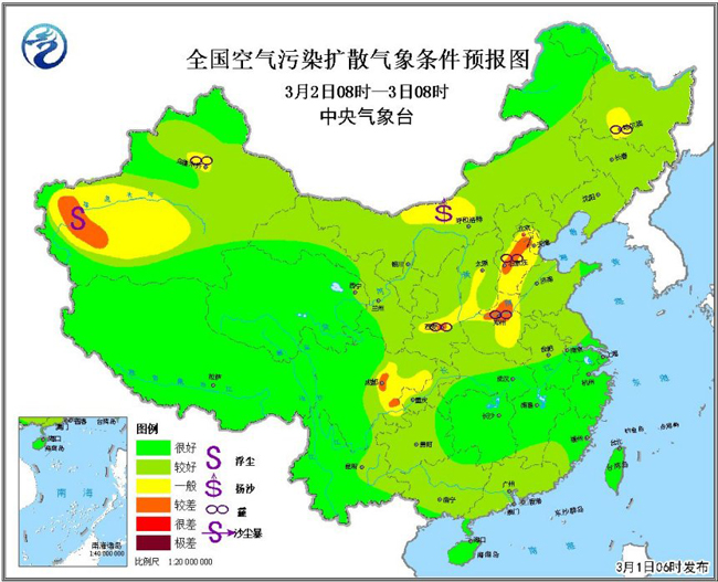 3月1日至7日,南方地區(qū)還將持續(xù)多陰雨天氣,強(qiáng)度多以小到中雨為主,其中3日至4日,江南、華南北部部分地區(qū)有大雨、局地有暴雨,并可能伴有強(qiáng)對(duì)流天氣。南方陰雨間歇期,還可能出現(xiàn)大霧天氣,這些地區(qū)的公眾出行時(shí)一方面要注意道路濕滑造成的不便,另一方面還要防范低能見(jiàn)度的影響。