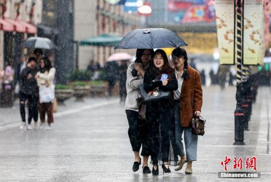資料圖:民眾在雨中出行。中新社記者 張暢 攝