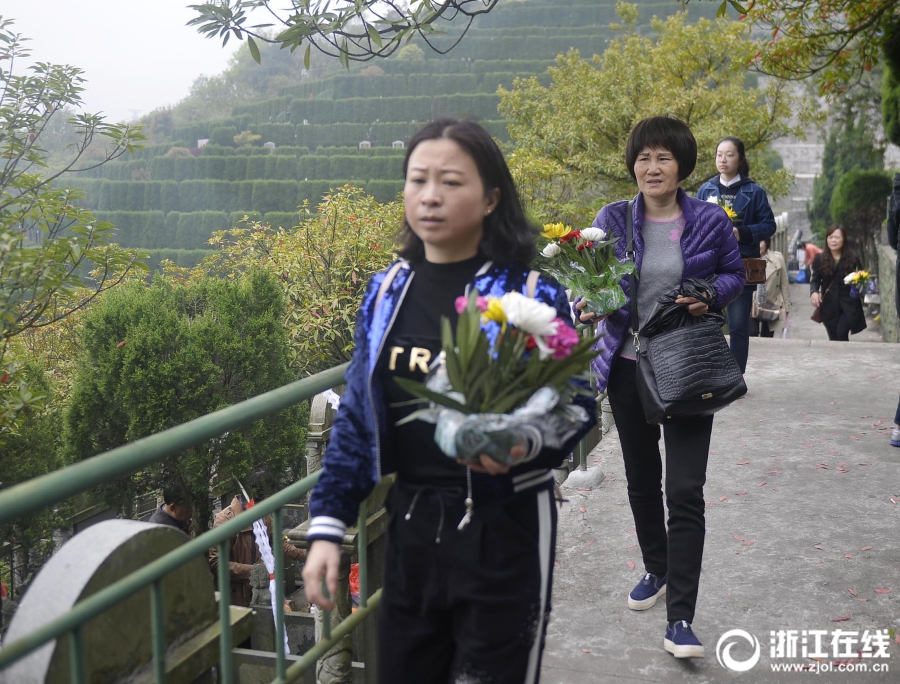 4月5日清明節上午,前往浙江省定舟山市定海區清陵掃墓人絡繹不絕,不少掃墓人用鮮花祭祀,寄托哀思懷念逝去的親人,倡導環保綠色的清明。(浙江在線拍友 胡社友 攝)