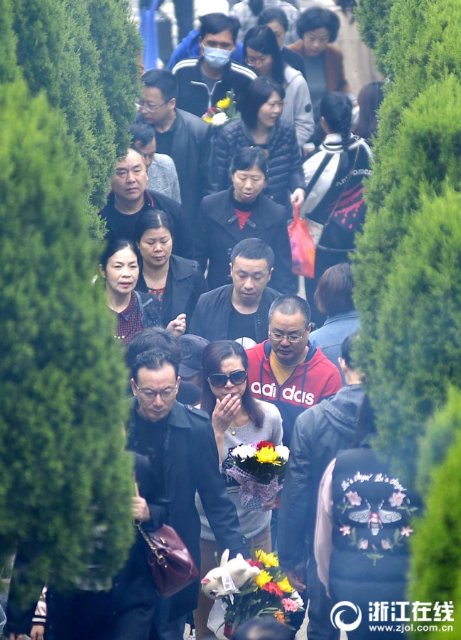 4月5日清明節上午,前往浙江省定舟山市定海區清陵掃墓人絡繹不絕,不少掃墓人用鮮花祭祀,寄托哀思懷念逝去的親人,倡導環保綠色的清明。(浙江在線拍友 胡社友 攝)