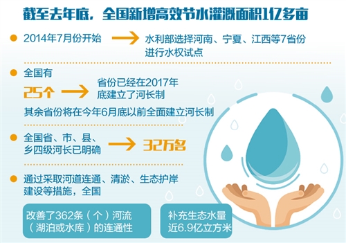 “目前,全國有25個省份已經建立了河長制,其余省份將在今年6月底前全面建立河長制。全國省、市、縣、鄉(xiāng)四級河長已有32萬名。各級河長帶頭巡河履責,開展專項行動,整治突出問題,健全管理機制,取得了明顯成效。”水利部河長辦主任祖雷鳴說,很多河流從“沒人管”到“有人管”、從“多頭管”到“統(tǒng)一管”、從“管不好”到“管得好”,實現(xiàn)了重大轉變。