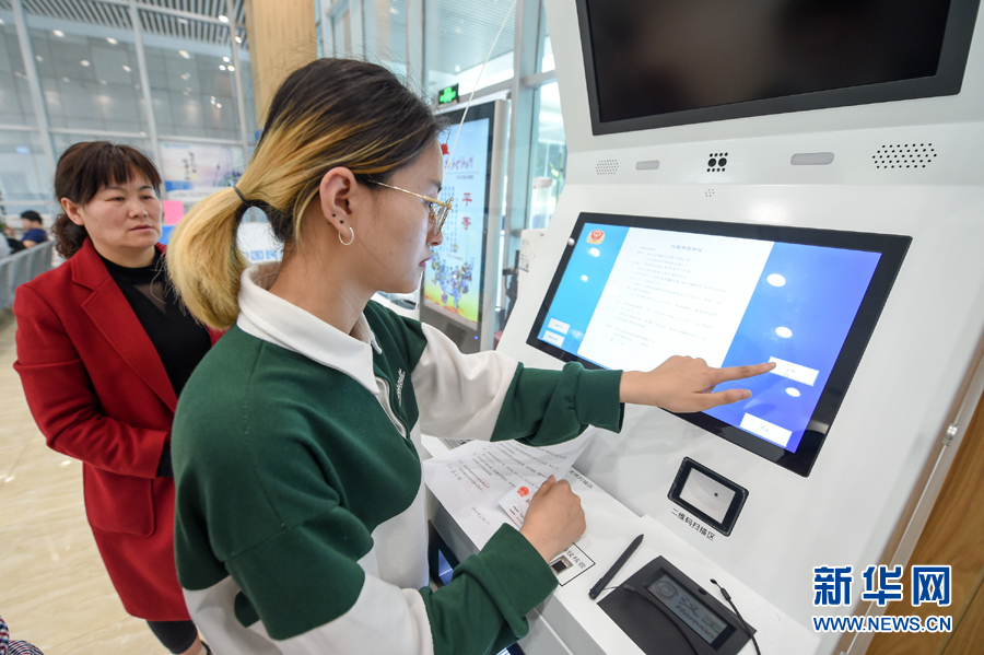 在南京市棲霞區(qū)商事登記服務(wù)大廳,市民用自動終端機辦理業(yè)務(wù)(3月29日攝)。新華社記者 李博 攝