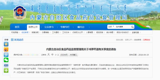 內(nèi)蒙古自治區(qū)食品藥品監(jiān)督管理局認(rèn)真貫徹落實(shí)國家藥品監(jiān)督管理局關(guān)于“鴻茅藥酒”有關(guān)事宜的通知要求,已組成檢查組赴企業(yè),責(zé)成企業(yè)將近五年來被各地監(jiān)管部門對其處罰的虛假廣告情況及產(chǎn)生原因、不良反應(yīng)發(fā)生等情況向社會作出解釋和公開;督促企業(yè)對藥品安全性和有效性情況作出解釋。進(jìn)一步核查企業(yè)是否按照藥品生產(chǎn)質(zhì)量管理規(guī)范組織生產(chǎn);對已審批的“鴻茅藥酒”藥品廣告進(jìn)行復(fù)核;監(jiān)督企業(yè)落實(shí)藥品安全主體責(zé)任。