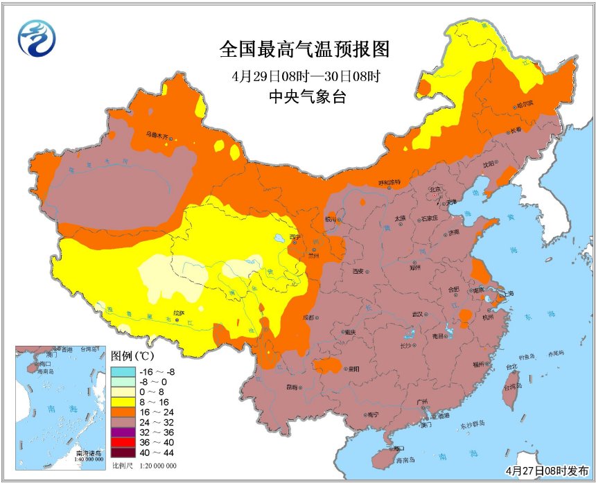 方翀:29日是“五一”小長假第一天,華北至黃淮大部地區氣溫將達29-30℃。30日起,冷空氣將影響中東部,北方氣溫將有所下降,降溫幅度在4-6℃左右,南方降溫不明顯,華南地區較為悶熱。
