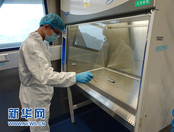 中國(guó)科學(xué)院武漢病毒研究所暖通設(shè)備工程師王亮在武漢P4實(shí)驗(yàn)室測(cè)試設(shè)備(資料照片)。 新華社發(fā)