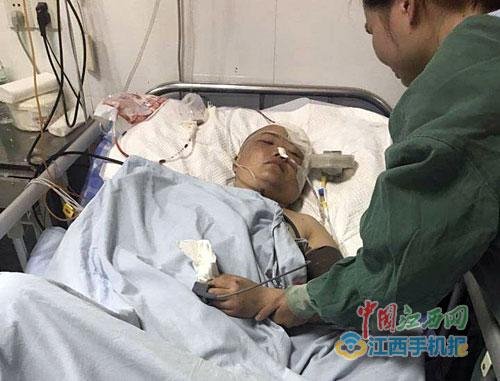 5月7日下午,江南都市報全媒體記者與劉慧芳的丈夫楊育華取得了聯(lián)系,他告訴說,他趕到現(xiàn)場時,妻子已經(jīng)不省人事。妻子被送到都昌縣人民醫(yī)院,搶救后又轉(zhuǎn)到九江市的醫(yī)院,經(jīng)檢測發(fā)現(xiàn),妻子身體多處骨折,顱腦重型損傷左側(cè)腦部膜外出血,傷勢十分嚴重,當晚就做了手術(shù)。醫(yī)生說,如果晚來一步,妻子可能就有生命危險。