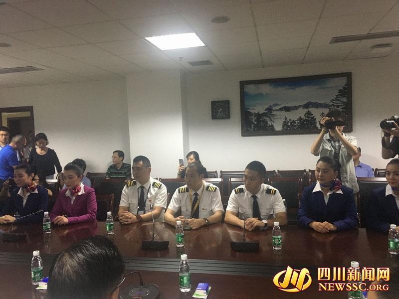 5月14晚8點30分,四川新聞網(wǎng)記者在成都市第一人民醫(yī)院見到了四川航空公司3U8633機組機長劉傳健及機組成員,記者發(fā)現(xiàn)機組成員狀態(tài)良好。在代表機組向媒體介紹相關情況時,機長劉傳健聲音洪亮,精神飽滿。劉傳健說,“感謝社會各界對機組的關心和厚愛。今天發(fā)生的這件事應該是很罕見的,但是經(jīng)過機組的共同努力,做到人機安全,保障了我們所有的旅客安全,我和我的機組是非常榮幸的。”