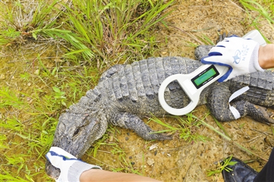 “通俗地說,電子芯片就相當于揚子鱷的身份證,我們再次捕捉到這只揚子鱷時,能迅速確定它的各種信息;無線電發射器可以給揚子鱷定位,讓我們知道它在哪?!卑不論P子鱷國家級自然保護區管理局宣傳教育科科長汪仁平說。