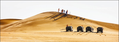 參訓人員在巴丹吉林沙漠集結。 黃思予攝