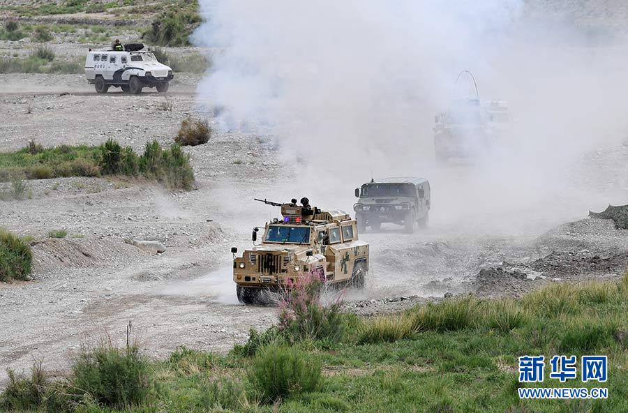 2017年6月27日,代號為“天山-3號(2017)”的上海合作組織成員國中吉邊防部門聯合反恐演習在中吉兩國邊境同時打響。新華社記者 王菲 攝