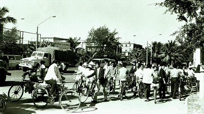 1988年12月的海口市海府路(新華社記者姜恩宇攝)與2018年4月的海府路(新華社記者郭程攝)。