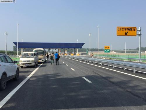 6月20日,記者在首都環線高速的通州漷縣南收費站看到,工人們正在進行道路標識安裝。