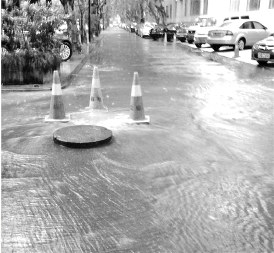這個(gè)系統(tǒng)效果如何?昨天中午,錢報(bào)記者來(lái)到白沙泉,雨中的白沙泉是靜謐的,沒(méi)什么人。記者在小區(qū)里轉(zhuǎn)了一圈,只在小區(qū)靠近曙光路的那一帶看到了積水,但不深,一個(gè)正冒著水的窨井蓋處樹了一個(gè)施工牌子。