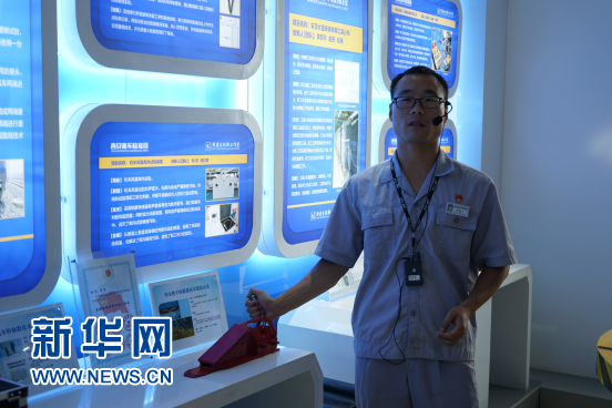周苗生現(xiàn)場(chǎng)講解并展示技術(shù)改革成果(6月25日攝)。新華網(wǎng) 王頔攝