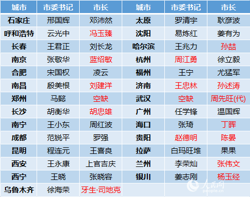 14個(gè)省會(huì)城市調(diào)整書(shū)記市長(zhǎng) 兩個(gè)“一把手”職務(wù)空缺待補(bǔ)
