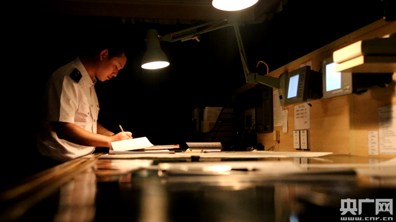 “情況怎么樣?”三副將本船的船位、風向風力,附近是否有礙航物等情況告知二副,這才算交班完畢。林志劍提前20分鐘就到了駕駛室,夜間航行危險系數加倍,要提早過來讓眼睛適應夜視環境。除了負責駕駛臺所有儀器設備的檢查、記錄和維護,還要及時更新海圖、每周權威機構發布的最新航海通告。