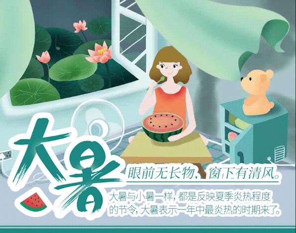 23日(周一),“大暑”節氣將正式登場。專家提示,此時節是一年里最熱的時候,公眾在飲食起居上,宜多喝水常食粥,晚睡早起適當午睡,祛除暑熱待秋來。>>>