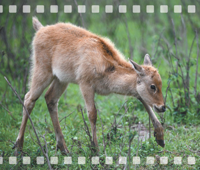 洞庭湖濕地生態環境不斷改善,目前洞庭湖的自然野化麋鹿已達140多頭(5月23日攝)。新華社記者 李 尕攝