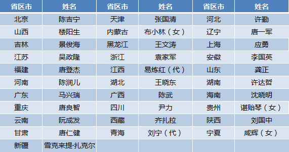 兩天內(nèi),江西、青海先后召開(kāi)省級(jí)人大會(huì)議,調(diào)整省長(zhǎng):江西省委書(shū)記劉奇不再兼任江西省省長(zhǎng),易煉紅任江西省代理省長(zhǎng);青海省委書(shū)記王建軍不再兼任青海省省長(zhǎng),劉寧任青海省代理省長(zhǎng)。至此,31省區(qū)市省級(jí)政府“一把手”全部就位。其中,有3名女性領(lǐng)導(dǎo),分別為內(nèi)蒙古自治區(qū)主席布小林、貴州省省長(zhǎng)諶貽琴、寧夏回族自治區(qū)主席咸輝。